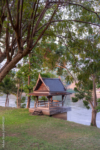 sitting, nature, lake, green, holiday, landscape, park, relax, relaxation, rest, resting, river, pavilion, summer, tour tourism, holiday maker, traditional, travel, tree, vacation, view, village, water, house, garden, architecture, wood, wooden, forest, grass, tree, building, bungalow, home, spring, old, sky, roof, rural, country