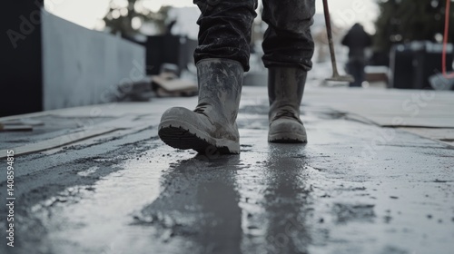 paving, crew, member, levelling, freshly, poured, concrete, city, sidewalk, teamwork, expertise, pavement, finishing, urban, infrastructure, content, men at work, work, boot