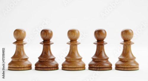 standing, lined, aligned, isolated, white, immaculate, clean, studio, solid, background, neutral, earthy, row, symmetry, uniform, repetition, classic, minimalist, precision, simple, photo, product, high key, pawn, wooden, chess, piece, group
