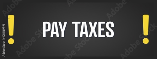 Pay Taxes. A blackboard with white text. Illustration with grunge text style.