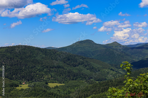 landscape, mountain, heaven, nature, green, forest, blue, view, cloud, summer, hill, travel, shaft, vale, grass, panorama, scenic, beauty, countryside, scenic, park, tour tourism