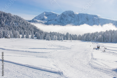 paysage de neige en hiver à Chamrousse dans le massif de Belledonne dans les alpes en France, sport d'hiver, pistes de ski de fond, sport, loisirs en hiver