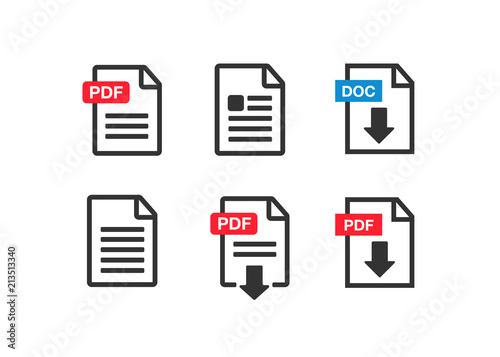PDF file download icon. Document text, symbol web format information
