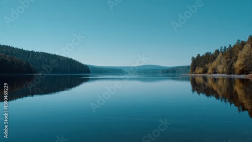 Peaceful lake with forest reflections