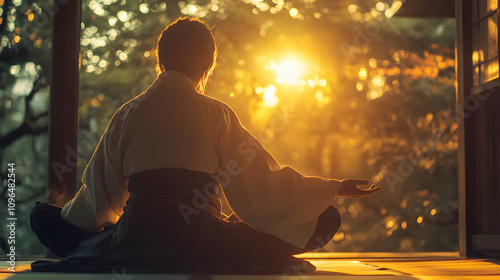meditation, mindfulness, inner peace, calmness, introspection, warm tones, glowing sunset