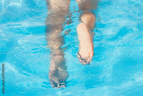 foot, water, pool, blue, swimming, leisure, relax, summer, calm, serene, refreshing, float, clear, closeup, sunlight, recreation, fun, vacation, holiday, lifestyle, peace, tranquil, chill, swim, aquatic, refreshment, brightness, day, toe, ripple, cool, relaxation, water, light, hydrotherapy, therapy, soak, wade, dip, crop, anonymous, unrecognizable, from above
