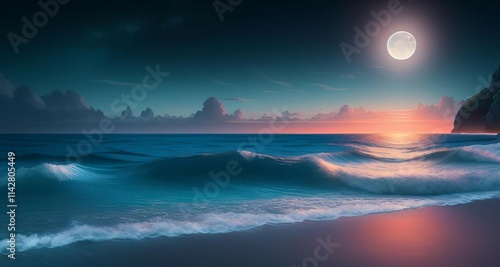 peaceful quiet paradise seascape beautiful seashore under moon light
