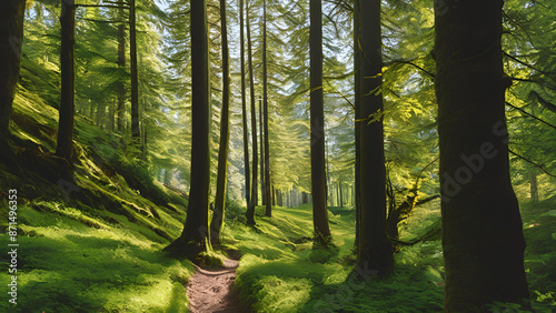 rainforest, forest, tree, nature, landscape, wood, path, green, wood, autumn, fog, pine, misty, sun, light, foliage, summer, timberland, park, foggy, mist, spring, leaf, sunlight, season