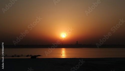 sunset, water reflection, calm water, evening light, orange sky, tranquil scene, dusk, twilight, horizon, natural beauty, scenic view, minimalism, symmetry, still water, relaxation, meditation, background, copy space, environment, golden hour, water surface, mindfulness, silence, sky, cloud