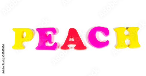 peach, food, fruit, vegetable, health, nourishment, alphabet, colours, colours, word, spelling, yellow, blue, pink, red, refrigerator, letter, wording, toy, playing, children, play, children, children, magnet, house, kitchen, home, utensil, school, education, learn, font, deep freezer, sticking, stick, teacher, instructing, message, text, white background, isolated