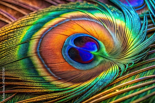 Peacock Feather Close-Up Panoramic AI Art, Detailed Macro Photography
