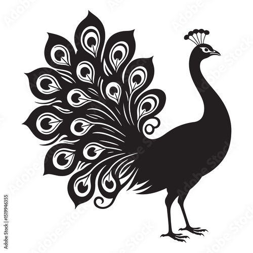Peacock feather vector illustration with decorative bird art and floral design elements
