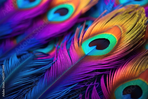 Peacock feathers background, closeup of colorful peacock feathers, Colorful peacock feathers on a colorful background. Close-up, AI Generated