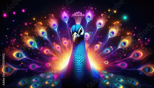 Peacock images, rainbow lorikeet Peacock, neon light Peacock images, colorful neon Peacock images,
