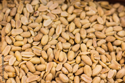 peanut fried nuts background texture surface in market counter, food wallpaper pattern concept