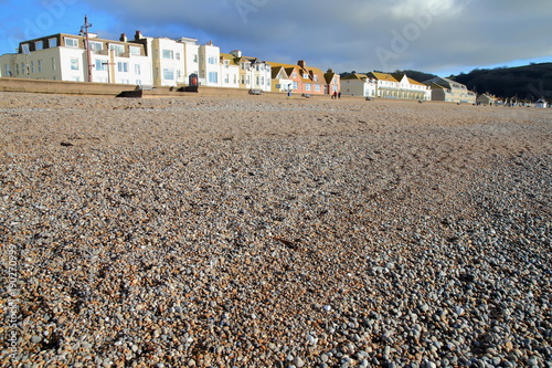 Pebble beach in town of Seaton in East Devon on the Jurassic Coast