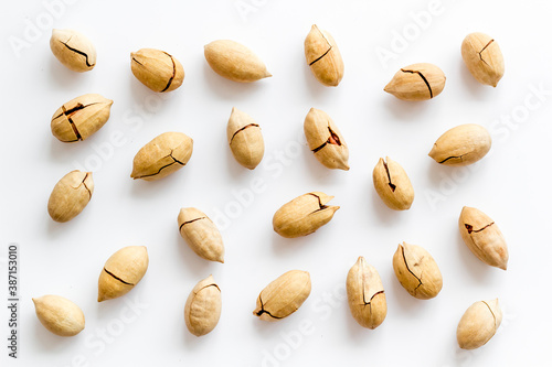 Pecan nuts pattern. Food background, top view
