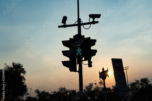 pedestrian, crossing, light, signal, city, asia, bangkok, camera, cctv, crosswalk, downtown, electronic, evening, go, green, guard, lamp, landscape, life, morning, outdoors, police, privacy, recording, road, safety, security, sidewalk, signs, sky, stop, street, sunrise, sunset, surveillance, system, technology, siam, traffic, transport, transportation, travel, twilight, urban, view, walk, watching, way