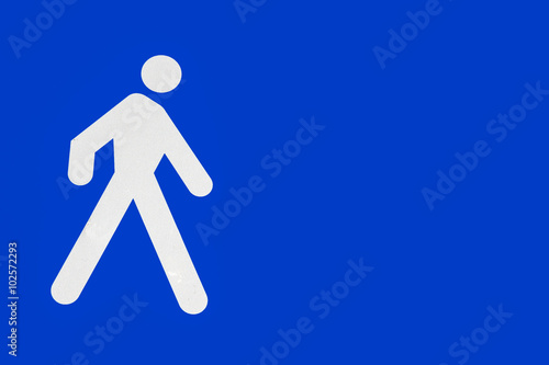 background, blue, city, crosswalk, isolated, large, man, metal, path, pedestrian, pedestrian, post, road, round, signs, signage, street, town, urban, walk, walking, way, white