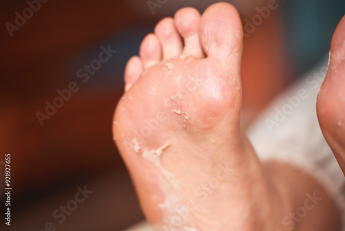 foot, peeling, skin, treatment, woman, beauty, patient, clinic, spa, salon, care, foot, pedicure, dermatology, chiropody, exfoliation, dead, dry, callus, corn, mask, peel, renewal, regeneration, smooth, soft, healthy, problem, condition, discomfort, pain, close, up, detail, indoor, unrecognizable, person, caucasian, female, lying, down, horizontal, skincare, health, therapy, scrub