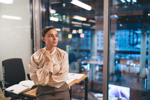 businesswoman, pensive, thoughtful, night, professional, work, business, serious, office, dreamy, woman, employee, job, workplace, female, young, eyeglass, modern, occupation, career, manager, lady, intelligent, sharpened, mulling, entrepreneur, window, thinks, corporate, executive, smart, glass wall, elegant, contemporary, company, pleasant, respectable, workspace, boss, leader, ceo, independent, well-dressed, appearance, organisation, individuality, personality, indoor