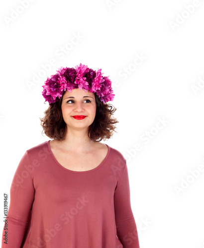 Pensive curvy girl with a flowered headdress
