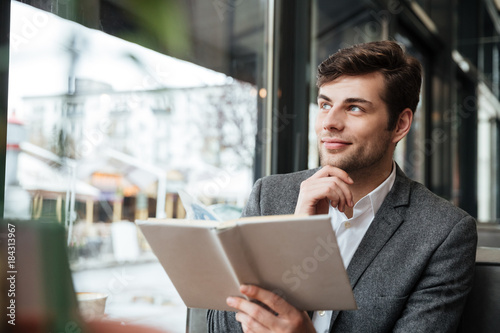 break, business, businessman, cafes, cafeteria, computer, confident, connection, entrepreneur, expert, freelance, guy, photogenic, cyberspace, laptop, looking, male, man, manager, modern, planning, portable, professional, eatery, sitting, startup, successful, table, technology, using, wireless, work, workplace, young, window, smiling, pensive, away, holding, chin, book