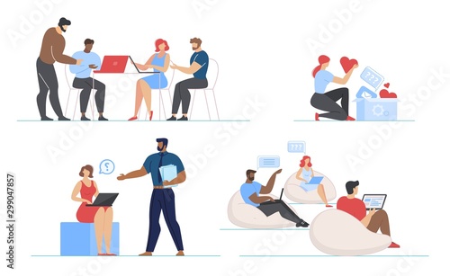 cartoon, diverse, multiracial, people, character, web log, flat, set, social, media, marketing, targeting, e-business, working, sharing, space, vector, illustration, african american, caucasian, computer, laptop, remote, freelance, application, blog, video, tutorial, commerce, business, trendy, slide, creative, cyberspace, self employed, person, networking, chatting, bundle, online, male, female, distance, office, team, teamwork
