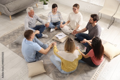 up high, addiction, adult, advice, aged, anxiety, background, care, caucasian, circle, clipboard, community, counseling, depression, female, floor, group, hand, happy, help, holding, indoor, male, man, meeting, mental, middle, patient, people, problem, professional, psychologist, psychology, psychotherapy, recovery, rehab, rehabilitation, senior, session, sharing, sitting, smiling, support, talking, therapy, trauma, view, woman, workshop