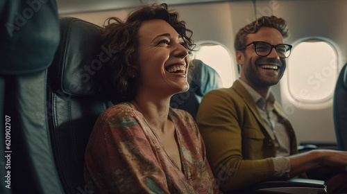 happy, people, sitting, flight, aeroplane, plane, craft, couch
