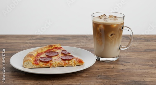 Pepperoni Pizza Slice and Iced Latte: A Serene Still Life