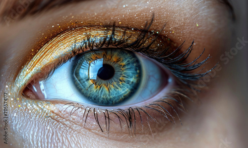 Perfect blue eye macro in a sterile environment and perfect vision. The vision of the future and healthy life concept.