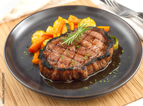 Perfectly Cooked Steak with Roasted Vegetables and Rosemary