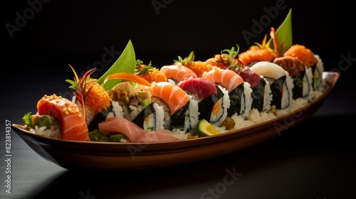 Perfectly plated sushi boat assorted rolls