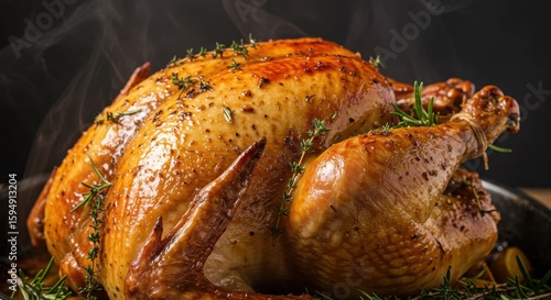 roasted, poultry, turkey, chicken, food, cooking, epicure, herb, rosemary, thyme, savoury, golden brown, appetising