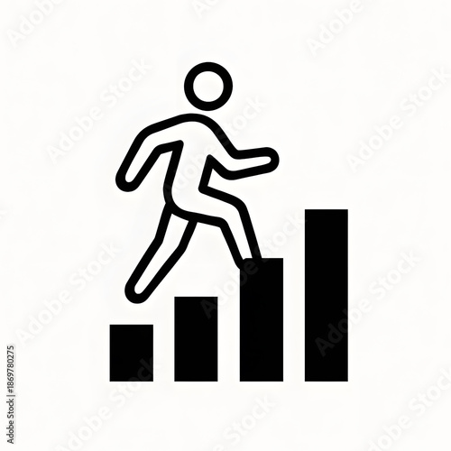 person, graph, progress, success, climbing, achievement, bar, ascending, movement, simple, black, white, concept, career, growth, upward, journey, ambition, motivation, goal, step, ladder, climb, forward, advancement, improvement, development, icon, minimalist, flat, design, art, symbol, signs, figure, runner, athlete, sport, fitness, exercise, training, physical exercise, motion, active, energetic, dynamic, momentum, drive, aspire