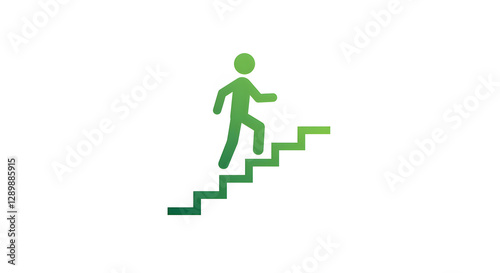 person, climbing, stair, icon, symbol, abstract, simple, graphic, green, shape, signs, way, success, progress, growth, forward, upward, direction, concept, vector, illustration, white background, path, journey, achieving, achievement, challenge, motivation, aspiration, corporate, business, strategy, development, career, step, level, goal, pictogram, leadership, opportunity