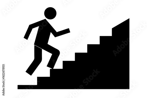 silhouette, stair, climbing, up, walking, person, man, figure, icon, symbol, movement, progress, success, ambition, goal, challenge, effort, journey, ascent, step, staircase, graphic, design, simple, clean, isolated, white, background, vector, illustration