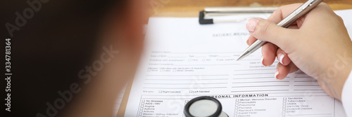 Person fills in a pen with document personal data