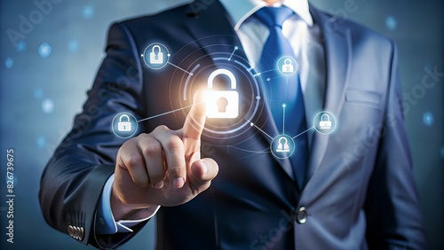 Person Hand Touching Lock Icon on Virtual Screen, Technology Security Background, Man In Future technology, Virtual Screen, Virtual Reality.