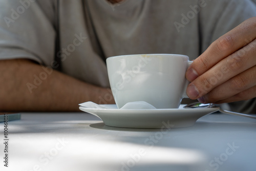 hot drink, cup, drink, hand, tea, woman, business, computer, beverage, laptop, mug, table, office, hand, breakfast, cafes, holding, people, break, drinking, person, hot, morning, spoon, businessman