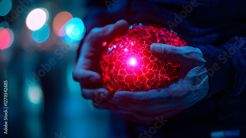 glowing, red, orb, hand, light, night, urban, colours, abstract, artistic, sharpened, texture, illumination, creativity, neon, modern, contrast, visual, atmosphere, emotion, depth, craftsmanship, design, shape, unique, holding, expression, energy, scene, art, artistry, detail, closeup, beauty, environment, interaction, craft, reflective, shiny, glossy, playful, optical, creative