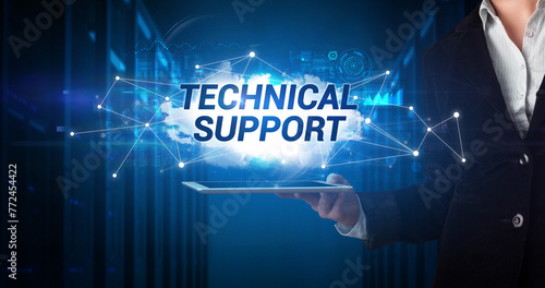 Person holding tablet, technology concept
