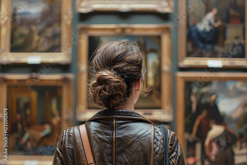 Person Observing Admiring Artwork in Museum or Art Gallery Exhibition study, Generative AI