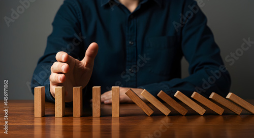 domino, hand, risk, wooden, business, management, prevention, effect, protection, strategy, success, stop, finance, concept, insurance, planning, solution, falling, bankruptcy, control, crisis, security, protect, investment, market, economic, table, person, shirt, grey, row, leadership, save, challenge, chance, support, help, idea, wood, stack, obstacle, connection, chain, reaction, activity, arrangement, danger
