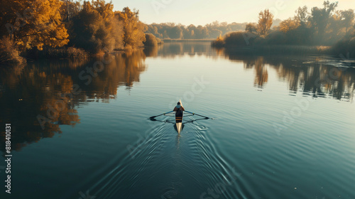 person, rowing, boat, lake, autumn, calm, water, beauty, paddling, oar, activity, leisure, oarsman, nature, foliage, seasonal, recreational, adventure, dinghy, lake view, autumn, boating, relaxation, autumn scene