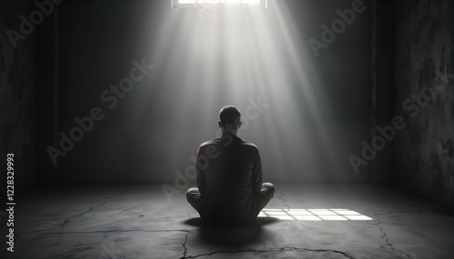 person, alone, dark, room, shadow, fear, psychological, moody, gloomy, surreal, eerie, creepy, sinister, mysterious, ominous, foreboding, looming, melancholy, sombre, pensive, contemplative, introspective, solitude, loneliness, anxiety, despair, distress, depression, horror, thriller, drama, emotion, feeling, atmosphere, environment, solitary, confined, captive, trapped, haunting, haunted, unseen, menacing, threatening, oppressive, claustrophobic, grim, gaol, inmate, confinement