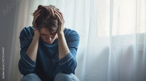 Person sitting alone in a room, holding head with both hands, showing deep emotional distress and inner turmoil, isolated and contemplative moment.