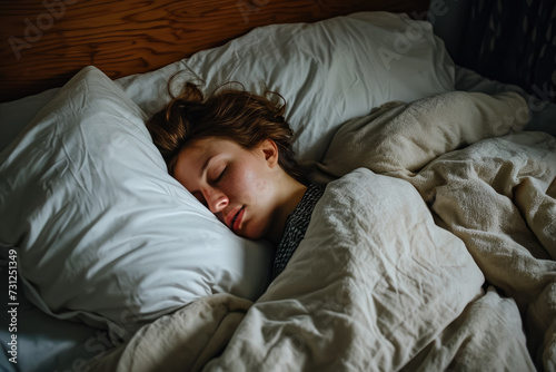person sleeping in a bed with a pillow and a blanket