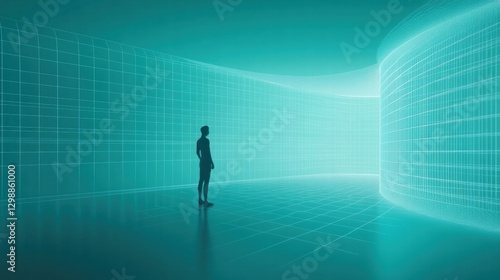 futuristic, grid, environment, person, silhouette, digital, technology, abstract, background, modern, architecture, design, space, virtual, reality, cyberspace, network, connection, structure, line, geometric, pattern, mesh, three-dimensional, rendering, illustration, scene, graphic, art, concept, innovative, creative, science, future, progress, advancement, innovation, exploration, discovery, potential, opportunity, growth, development, transformation